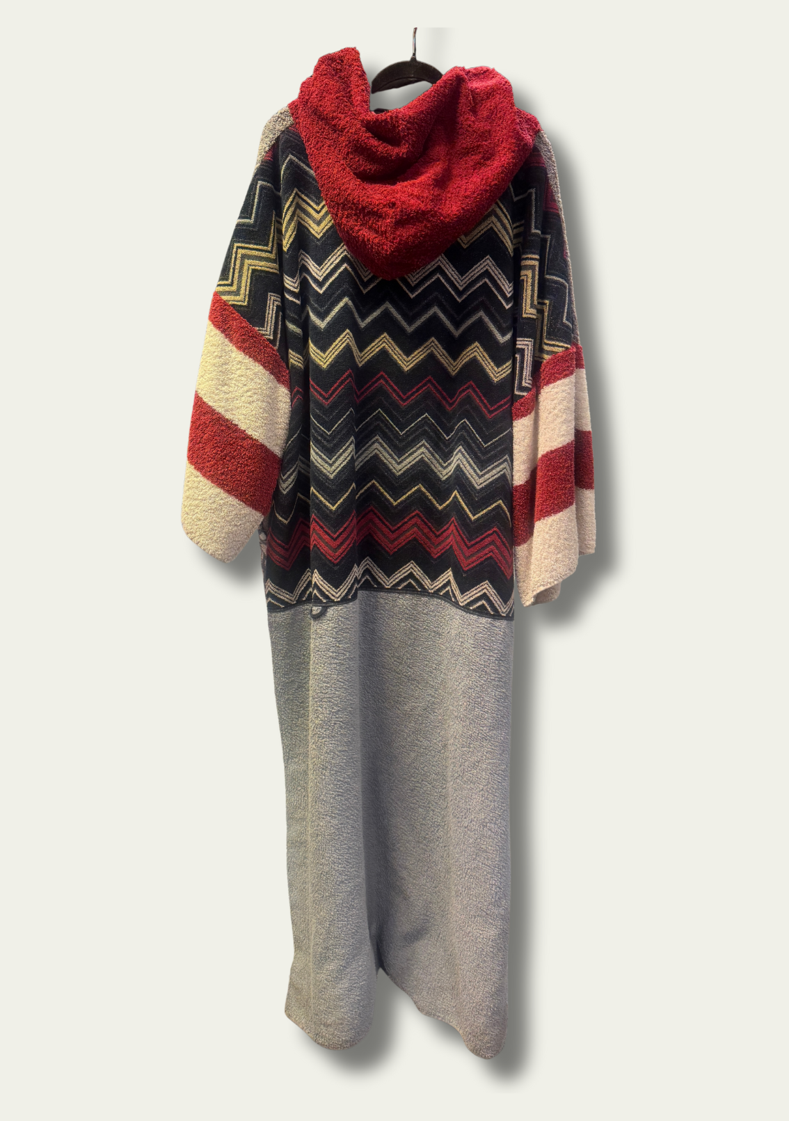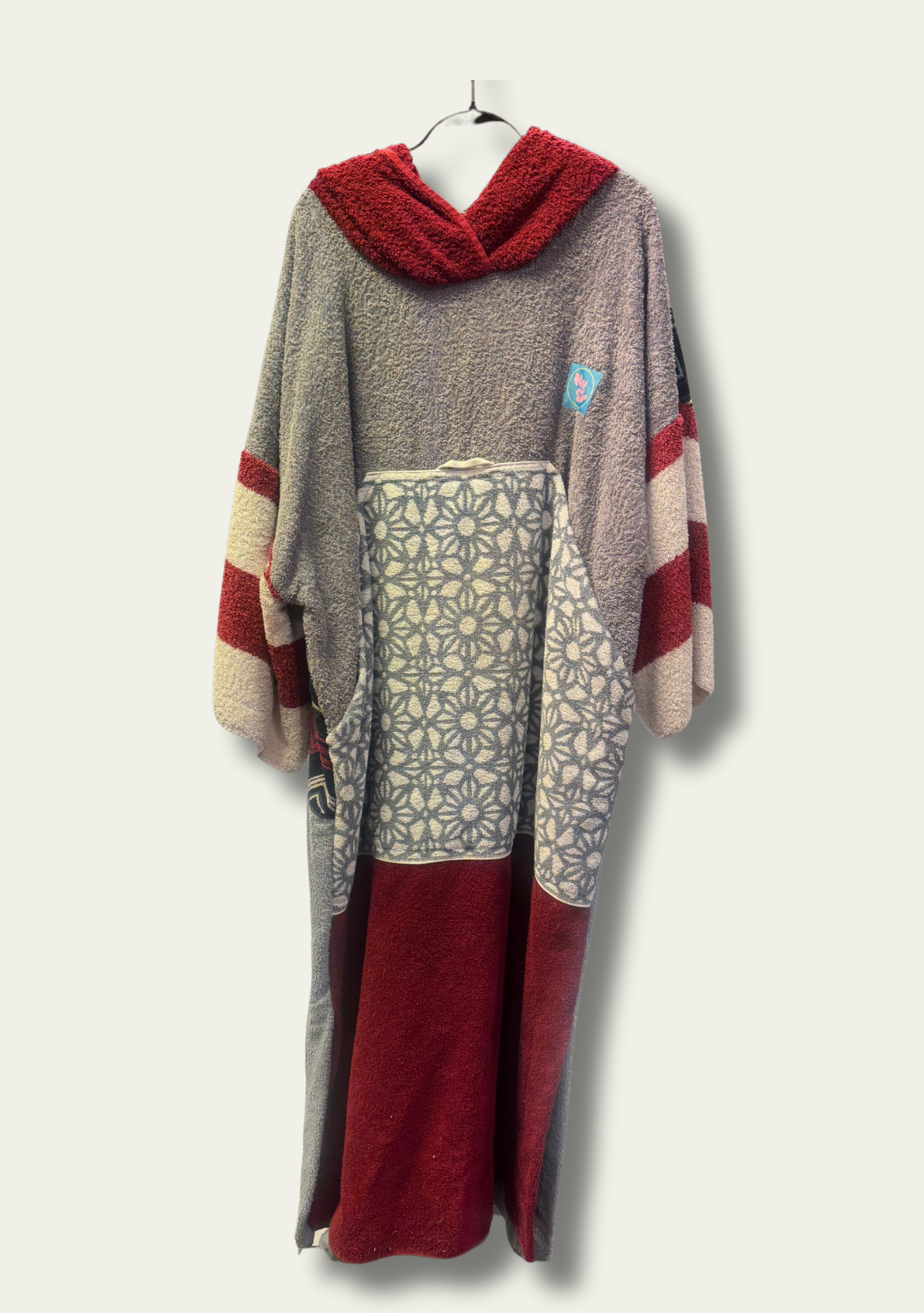Mysi badeponcho er unikt designet og håndsydd av oss – laget av gjenbrukte, rensede håndklær som får nytt liv i en ny form. Resultatet er en myk, fargerik og helt unik hettegenser – ingen er like. Mysi ponchoen er i one size og passer til de aller fleste.