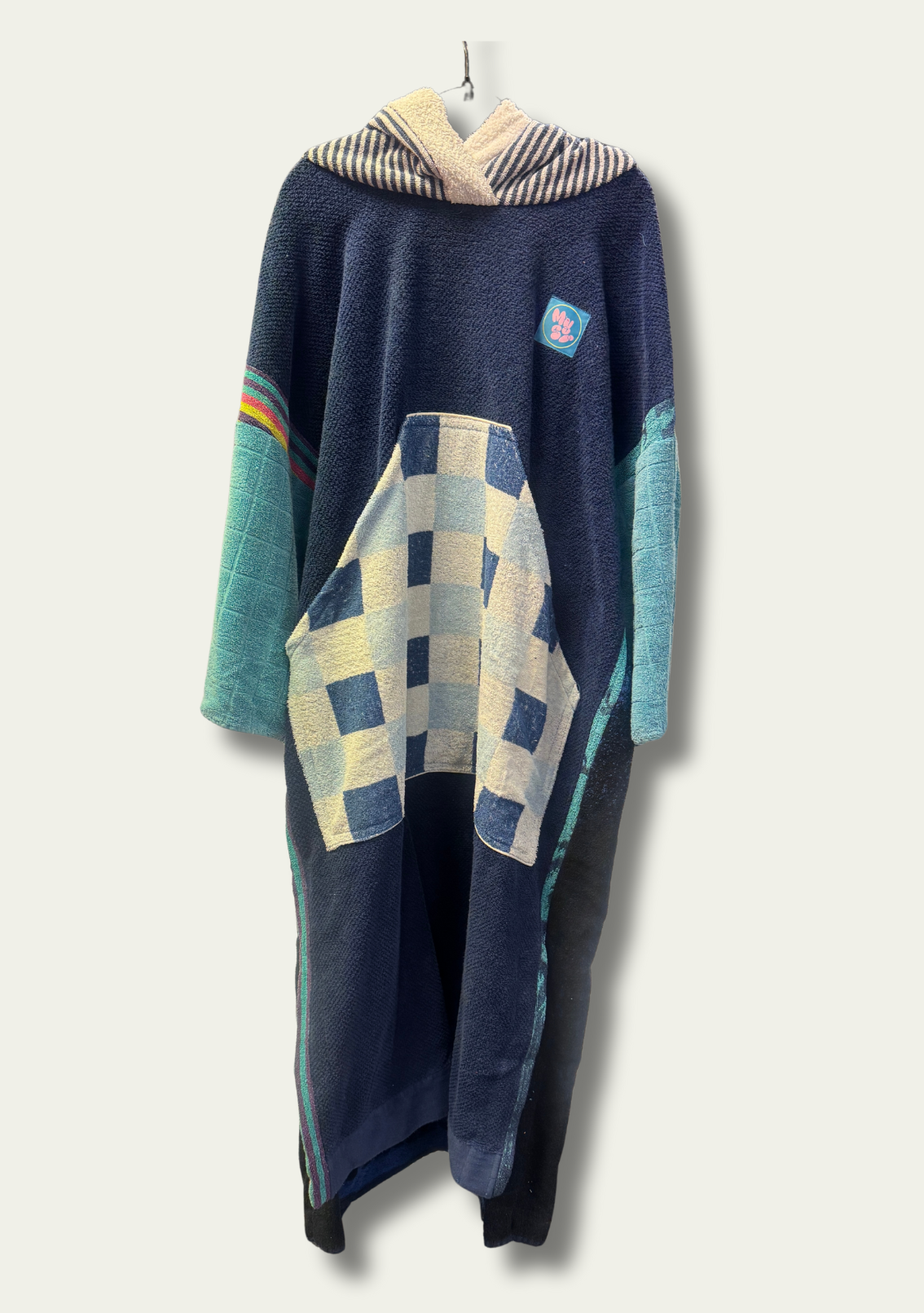 Mysi badeponcho er unikt designet og håndsydd av oss – laget av gjenbrukte, rensede håndklær som får nytt liv i en ny form. Resultatet er en myk, fargerik og helt unik hettegenser – ingen er like. Mysi ponchoen er i one size og passer til de aller fleste.